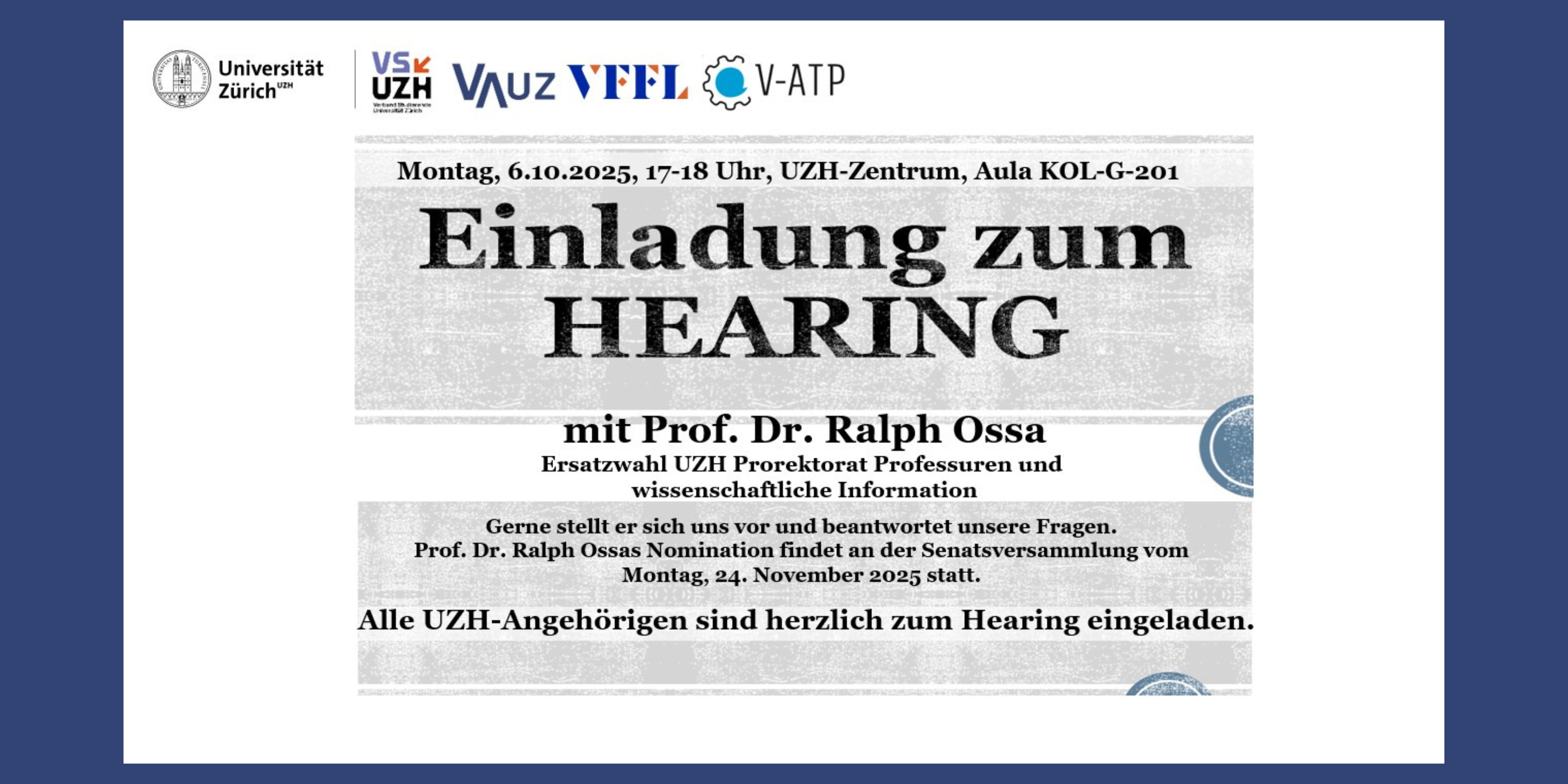 In this role, he will also oversee human resources. To introduce himself to all of us, the UZH representative bodies associations are organizing a joint hearing to which you are all invited to get to know Prof. Ossa personally.